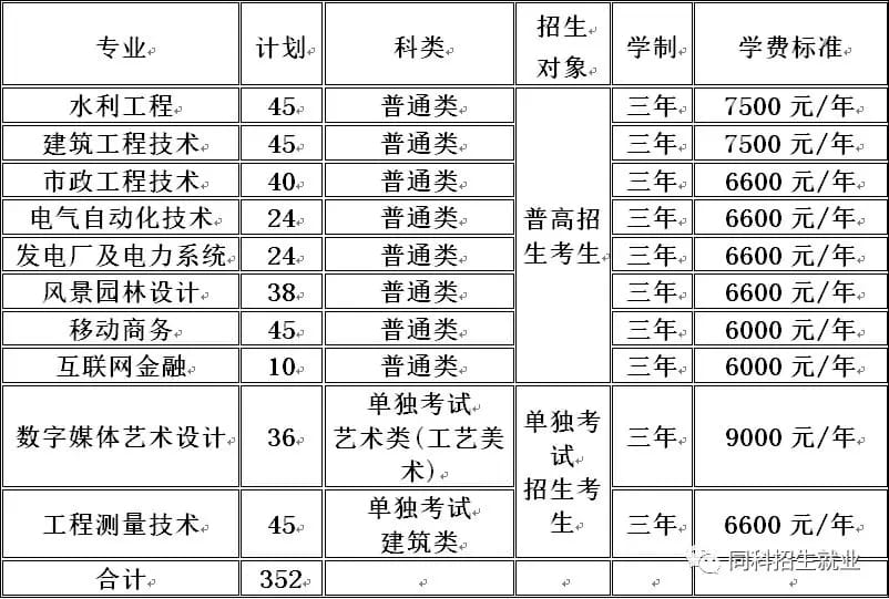 第七条 学院2019年面向浙江省高职提前招生计划共352人,具体分专业招生计划如下: